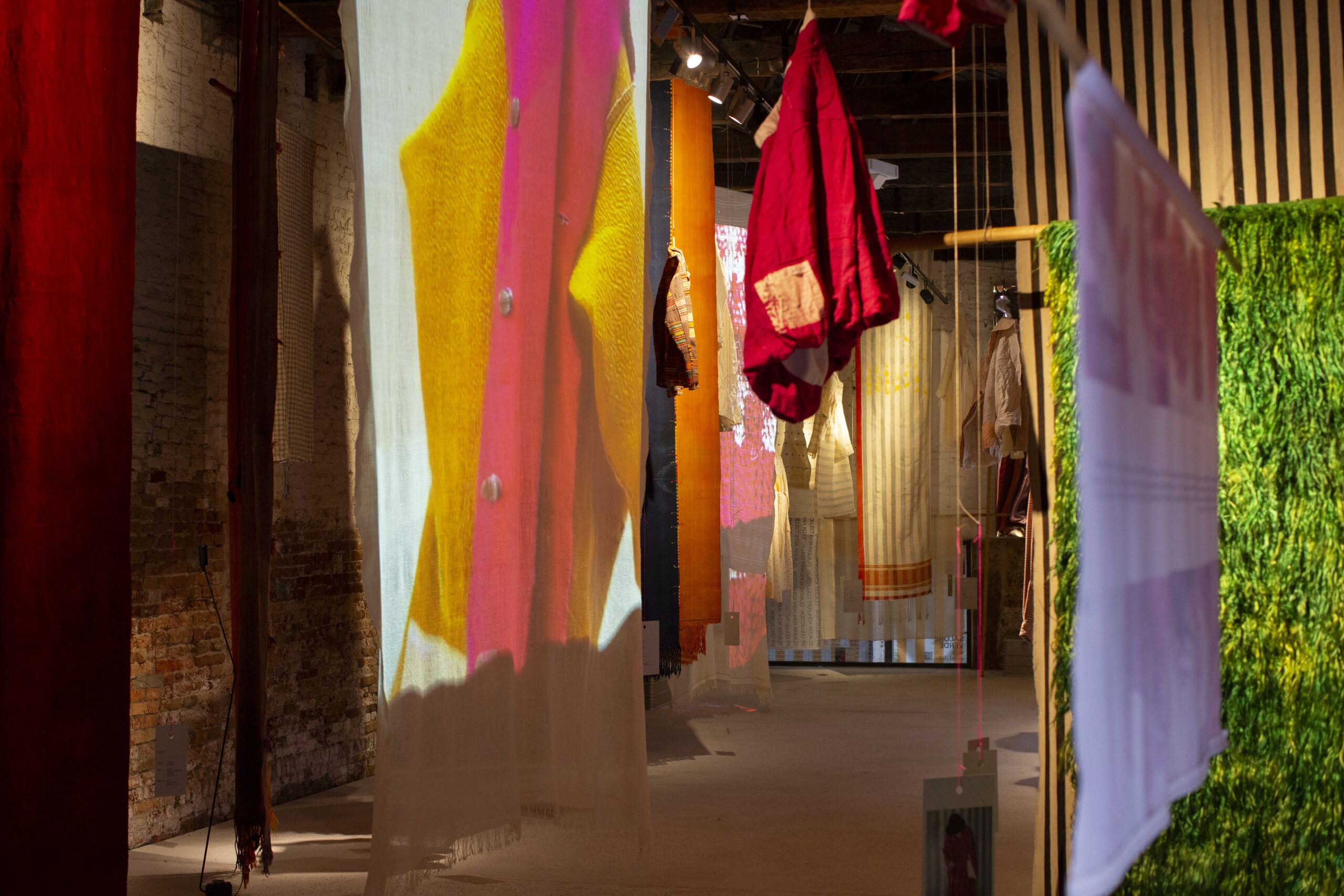 Salone Verde art & social club shows with the running expo “keep cool! workshop for cool cities” in one space the concept by artist Antje Schiffer with textiles from the private Claudia Kohlhoff Collection.